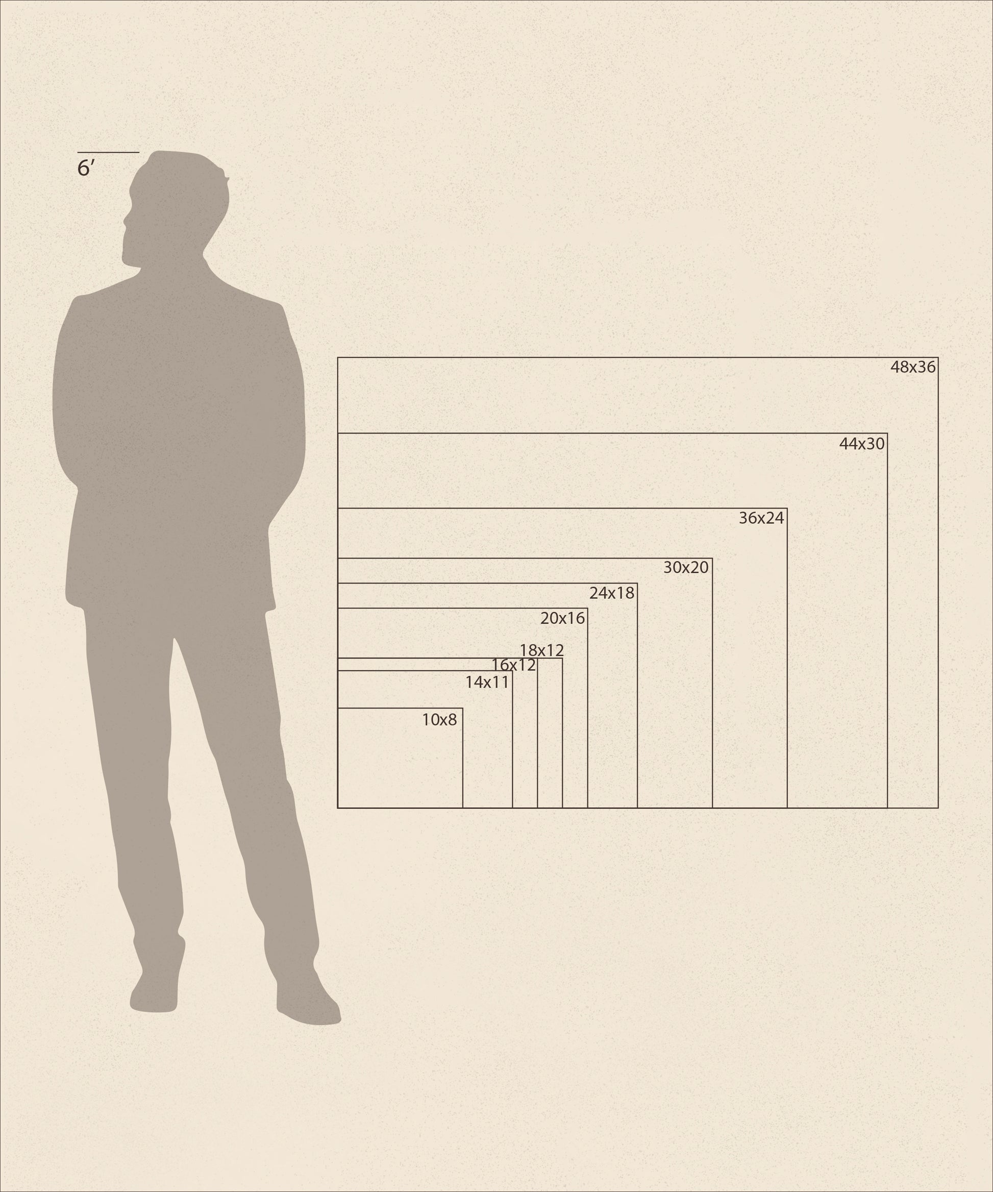 *Our largest size, 36x48, only has a 2" white mat which makes its final frame size 40x52.