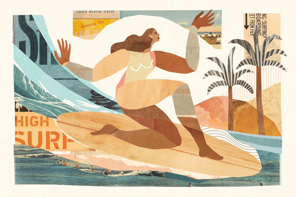 Ride the wave with this soulful surfer piece. Featuring a female surfer mid-ride, this print captures the feeling of a perfect day on the water. Part of our Coastal Collage Series, it’s built from vintage coastal textures and images, giving it a distinct, layered look. Let her ride solo, or pair her with her male surfer counterpart for an effortless coastal duo.