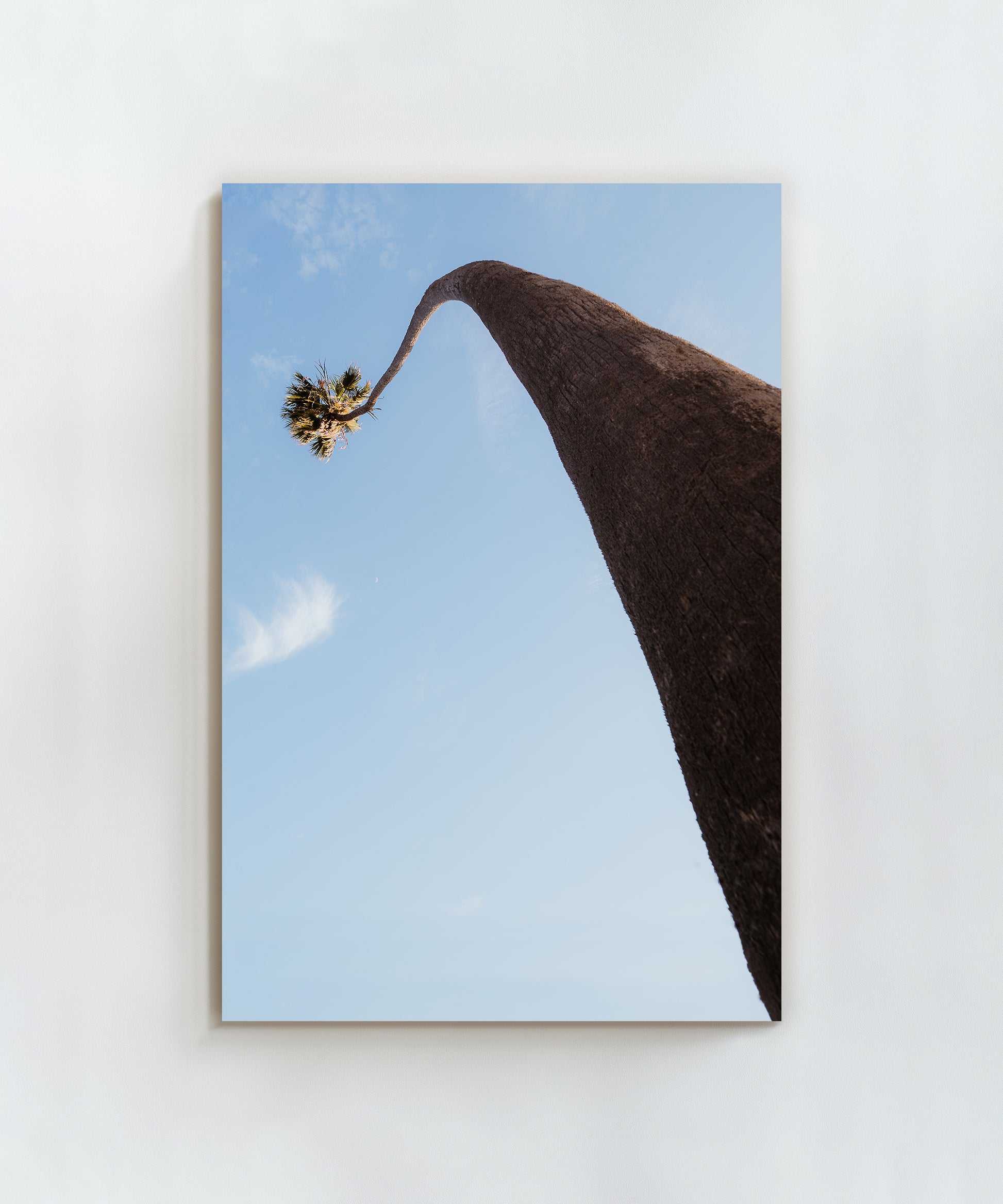 This piece is print #6 in a stunning 8-print collection by Santa Barbara based photographer Alex Noble. Noble has an eye for capturing simple yet stunning compositions on the coast of California, like this whimsical shot looking up the trunk of a palm.
