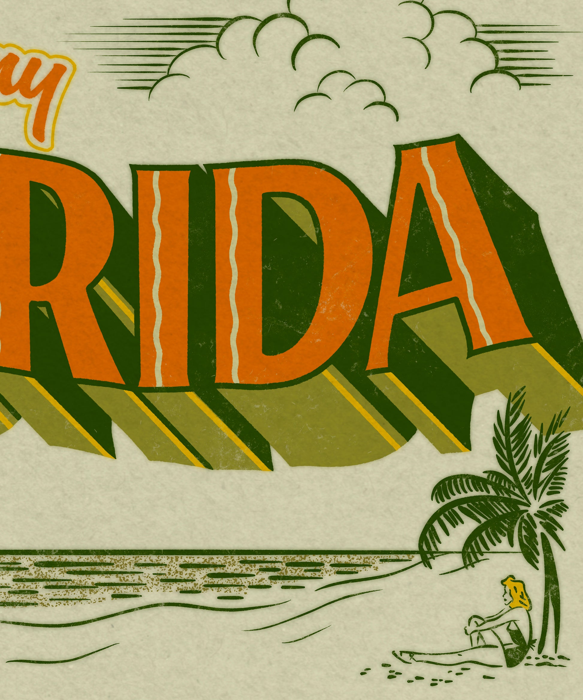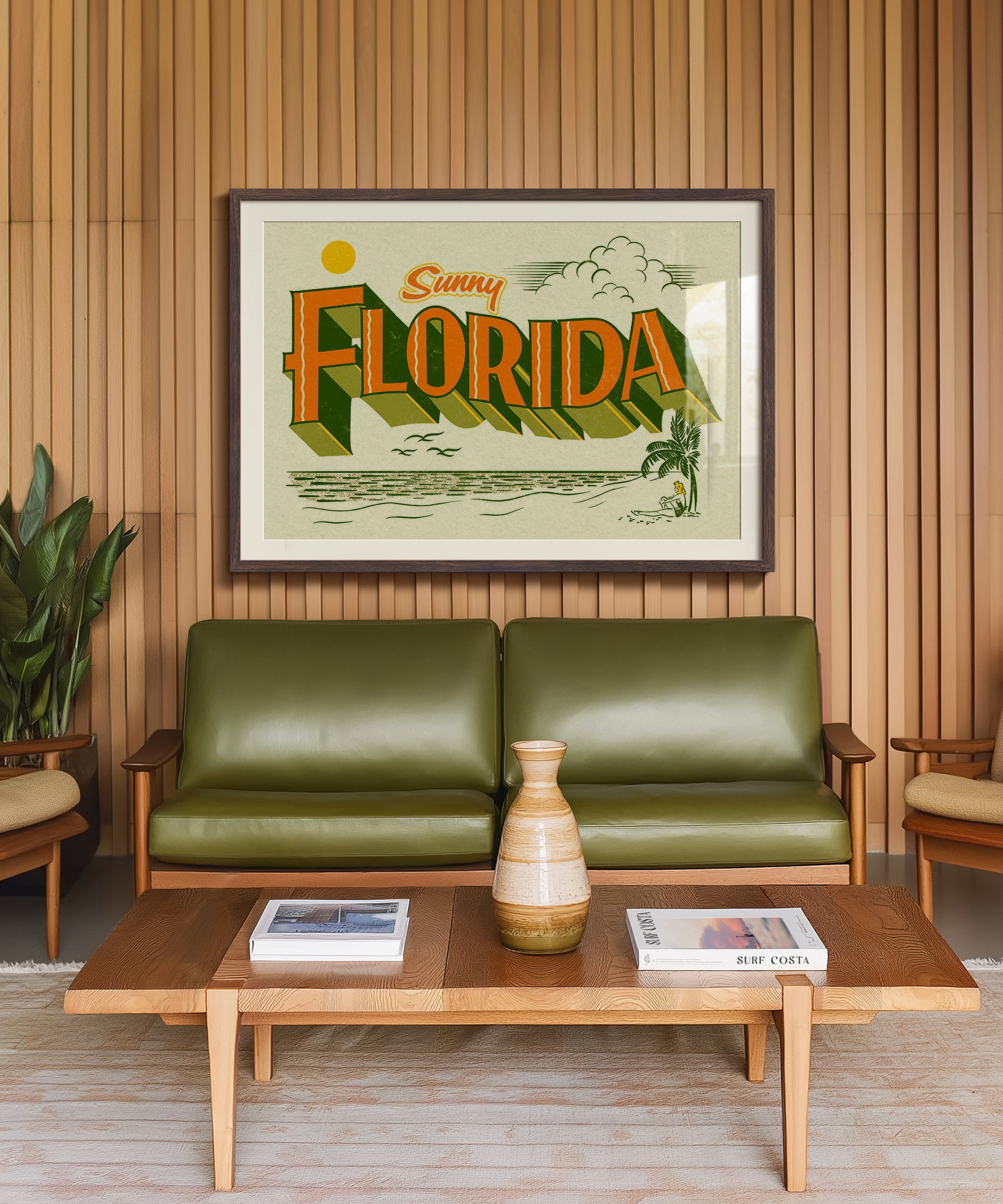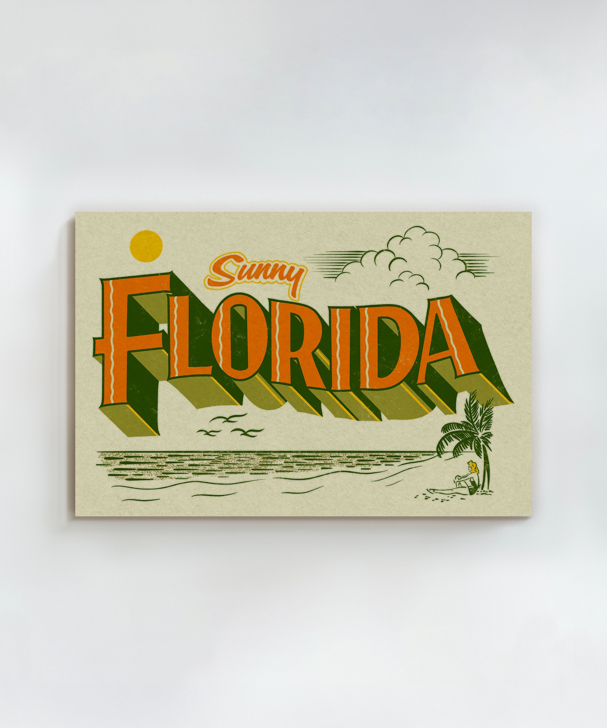 Bring the vibes of the Sunshine State to your walls with this vintage-inspired typography print. Featuring subtle textures and illustrations inspired by retro travel posters and prints, this piece will add a sunny sophistication to your space. Whether you're a Florida native or new to the state, this print lets you bring the Gulf Coast to your home, no matter where you are.