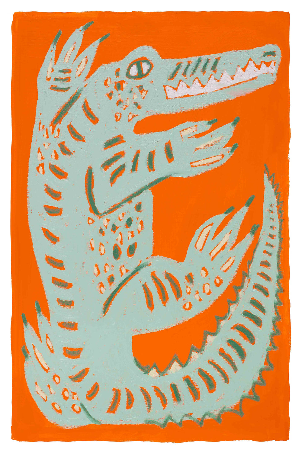 Florida's most notorious reptile is here to add charm to your space in this playful piece by Melissa Lakey! This "Friendly Gator" was originally created with oil sticks on canvas, resulting in a final print rich in texture and color. Perfect for any Florida-inspired space, a University of Florida fan, or anyone who loves this Everglades favorite, this big bold gator is sure to stand out!