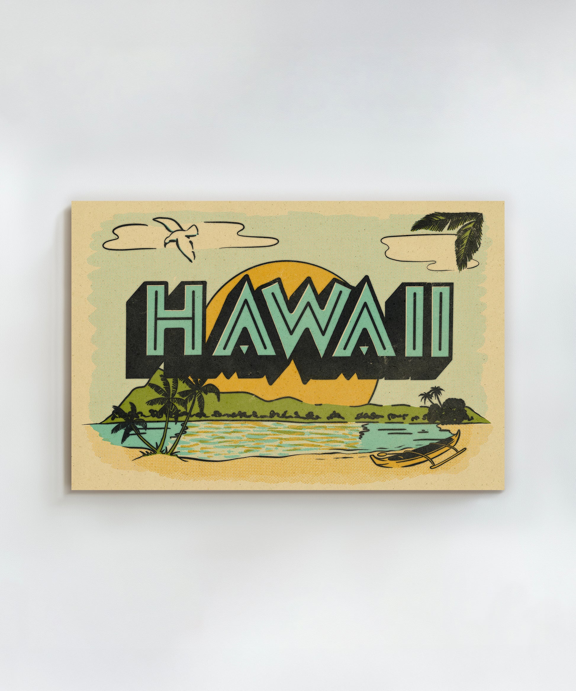 Make every day feel like a tropical getaway with this vintage-inspired print that channels the laid-back charm of old island postcards. Subtle textures and a refined color palette evoke the timeless allure of a bygone era, lending an air of understated elegance to any room. The result? A laid back statement piece that effortlessly whisks you away to paradise—no passport required.