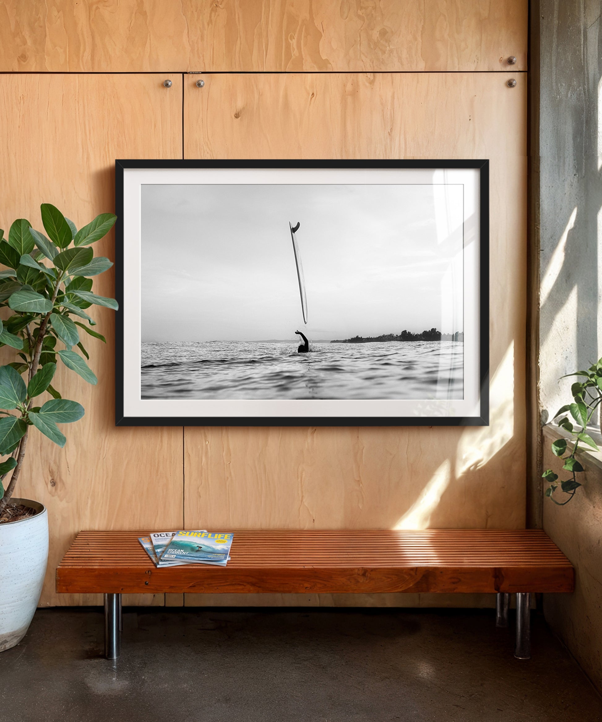 Hover Board by Paula Ortega embodies the feeling of pure bliss right after the perfect wave. In this precisely timed shot, Ortega captures a surfer launching his board out of the water, creating a dynamic coastal composition that celebrates surf. The perfect print for the surf lover in your life, Hover Board is a guaranteed statement piece on your wall.