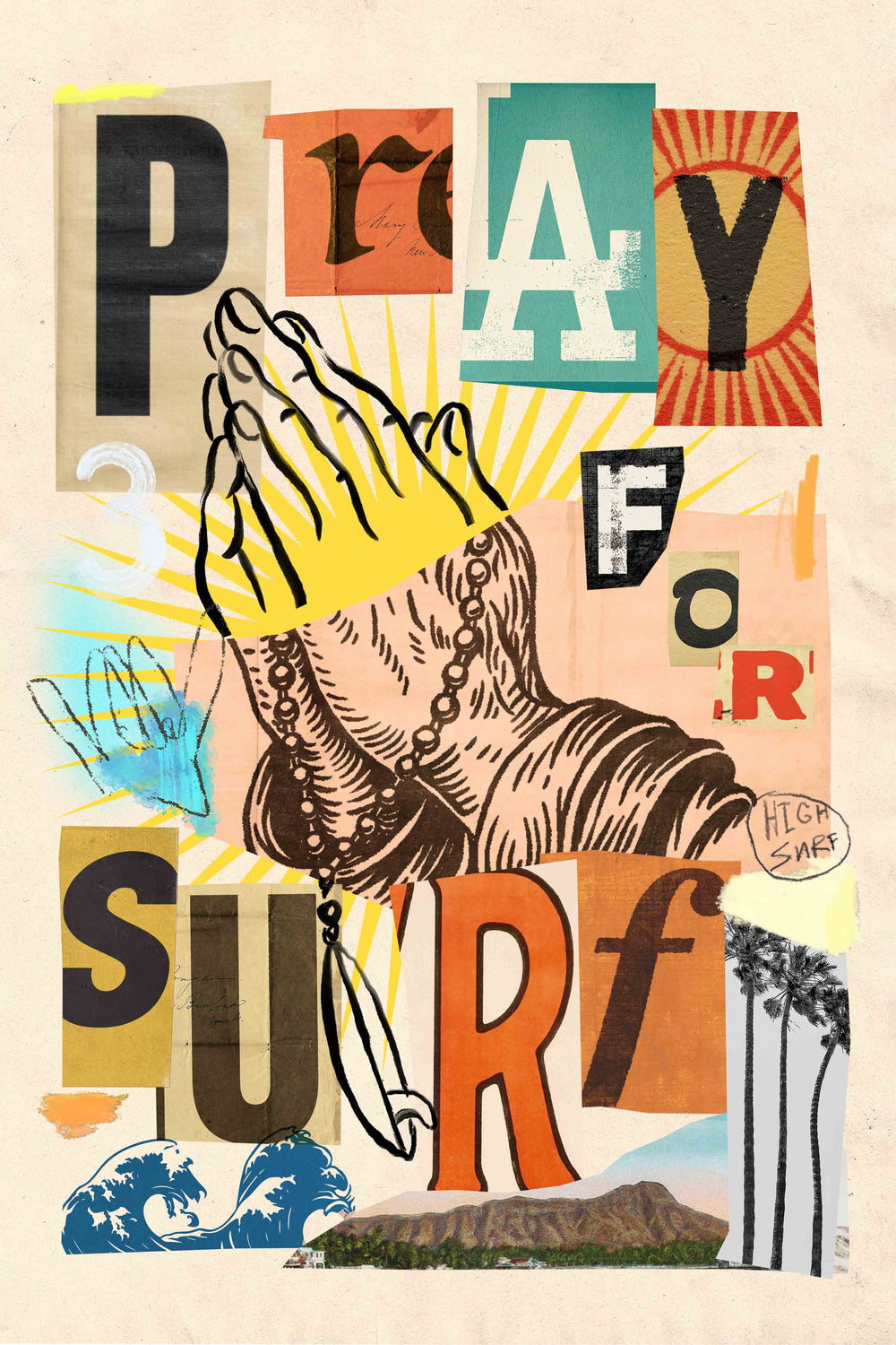 Sun, salt, and a little divine intervention. This collage-style print blends retro surf typography with vintage style graphics and bursts of color to channel a feeling of coastal nostalgia charm. The perfect piece for your beach cabin or board shack, this print is for anyone who knows the best prayers are said at sunrise with a board under arm.