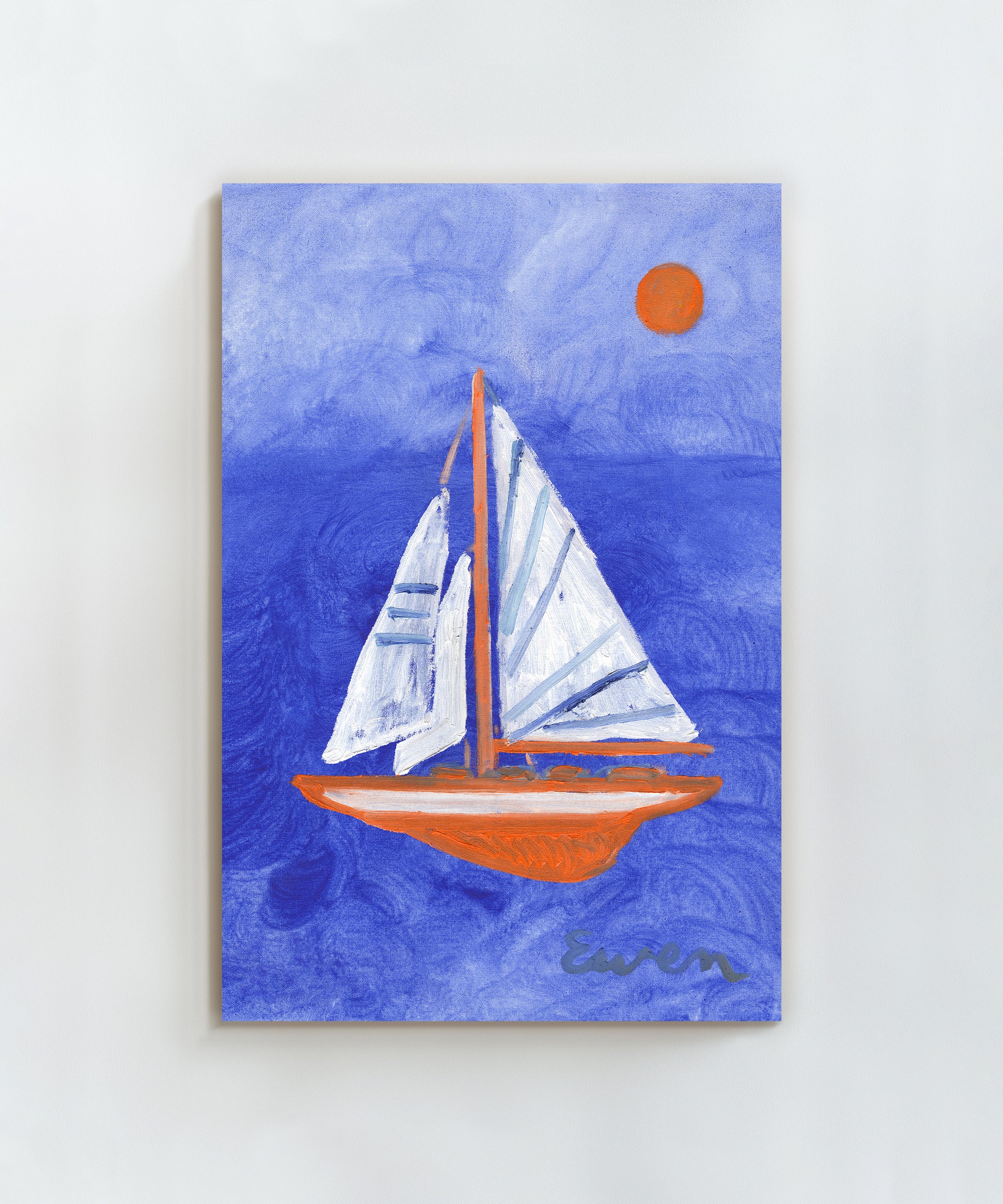 Bold, beautiful, and blue, "Sailboat #6" by Anne-Louise Ewen adds a vibrant splash of ocean hues to any coastal space. Originally painted with oils in Ewen's distinct loose style, its minimalist palette and expressive brushstrokes bring depth, character, and life to the piece. Whether you're adding a touch of sophistication to a little one’s coastal nursery or seeking a bold pop of color in your beach cottage, this artwork effortlessly brings the deep blue sea indoors.