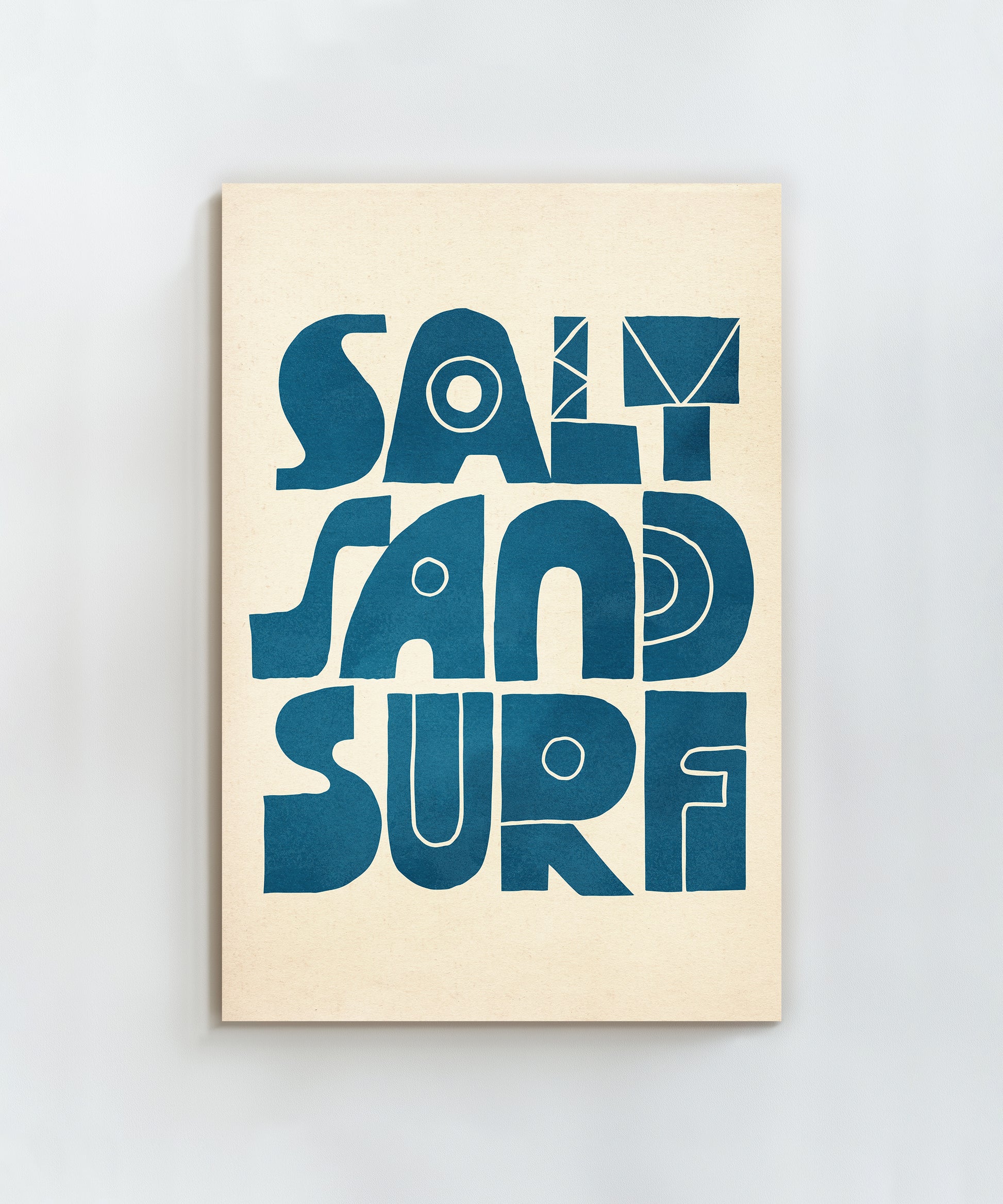 Salt. Sand. Surf. Three crucial elements that make the coast what it is. This typography piece, made from custom-designed type, brings a minimalist touch to any beach home, no matter what coast you're on. With playful details and subtle textures throughout, this piece is sure to bring that surf-house feel to your living room, entryway, office, or more.