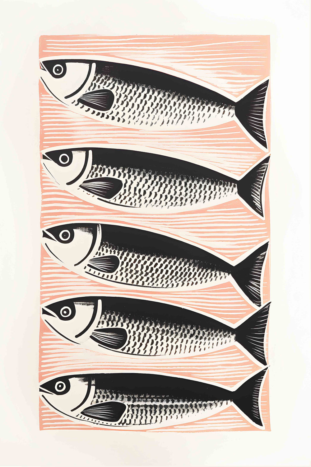 This sardine print, done in the style of a traditional blockprint, is the first in our Coastal Blockprint Series! With textures and details throughout, this quirky print is perfect if you're going for a fun, yet minimalist style in your space!