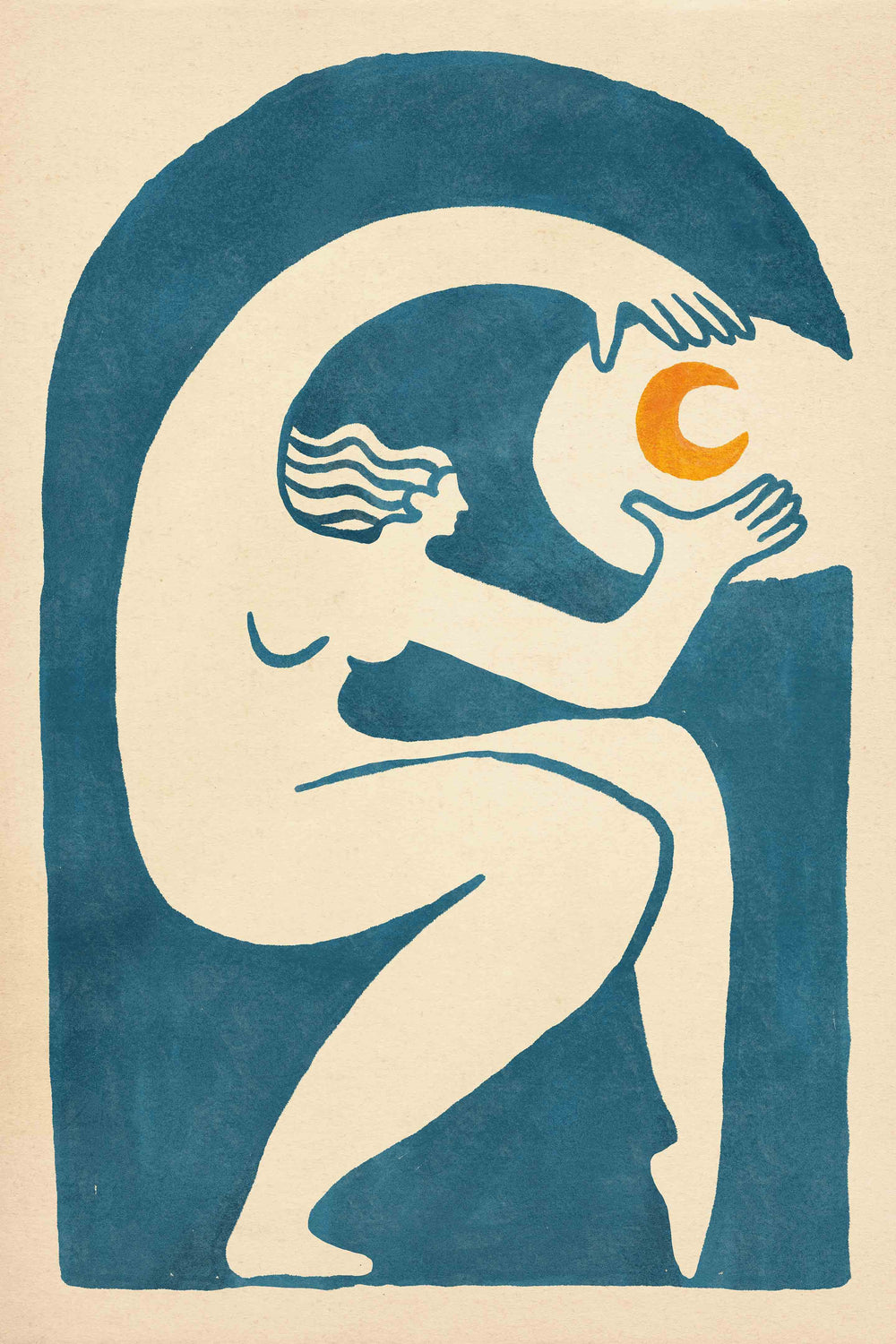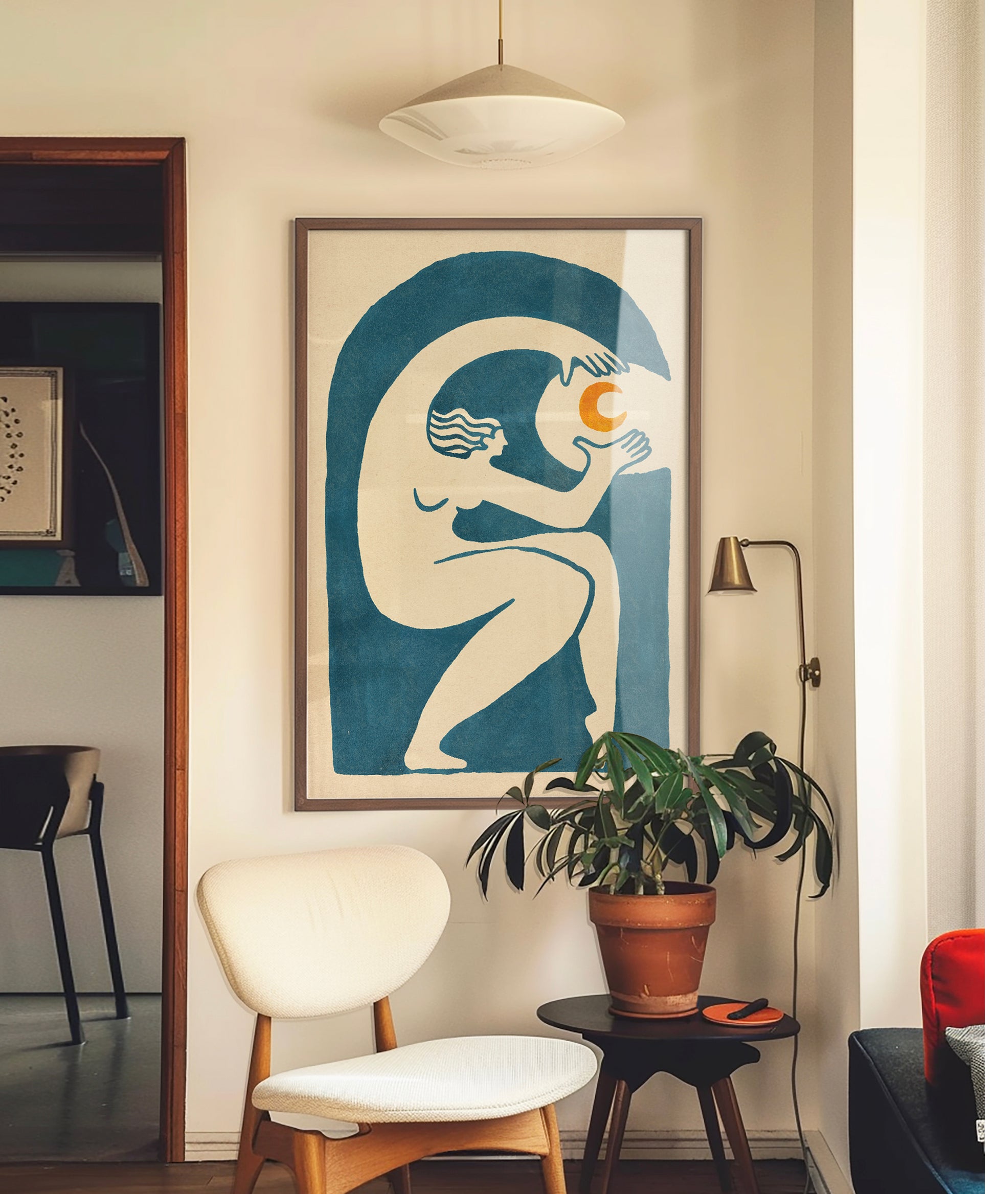 The woman and the moon - print #2 in our Sun and Waves Series. With it's minimalist and textured style, this piece will help create the perfect relaxing atmosphere in your coastal space. We recommend pairing this piece with Sun and Waves #1 for the perfect sun and moon duo!