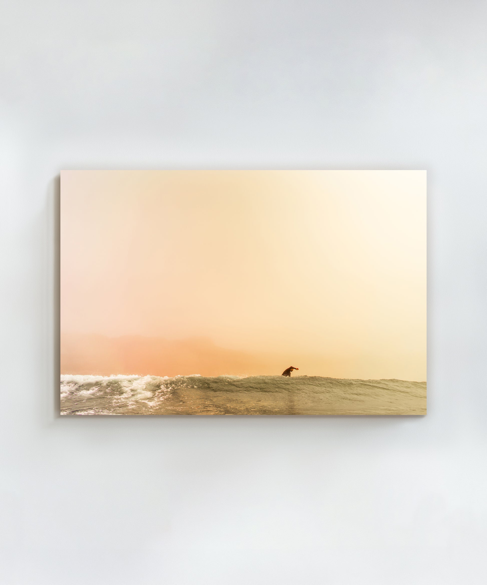 This piece is #1 in Ben Christensen's Surfing Sunsets Series, a collection of four striking photos that capture the serene moments during some of the final rides of the day. With its soft yellow and orange hues, this piece is perfect for those wanting to add a calming, minimalist touch to their walls.