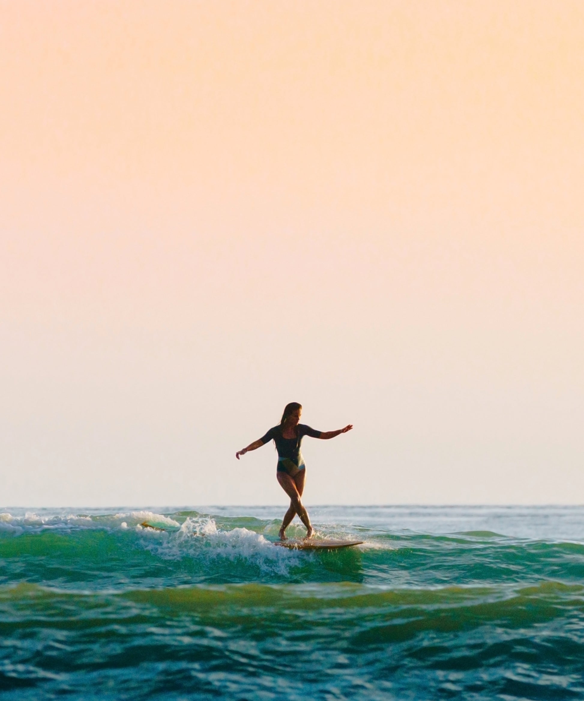This piece is #2 in Ben Christensen's Surfing Sunsets Series, a collection of four striking photos that capture the serene moments during some of the final rides of the day. With its beautiful sky and blue waters, this piece is perfect for those wanting to add a calming, minimalist touch to their walls.