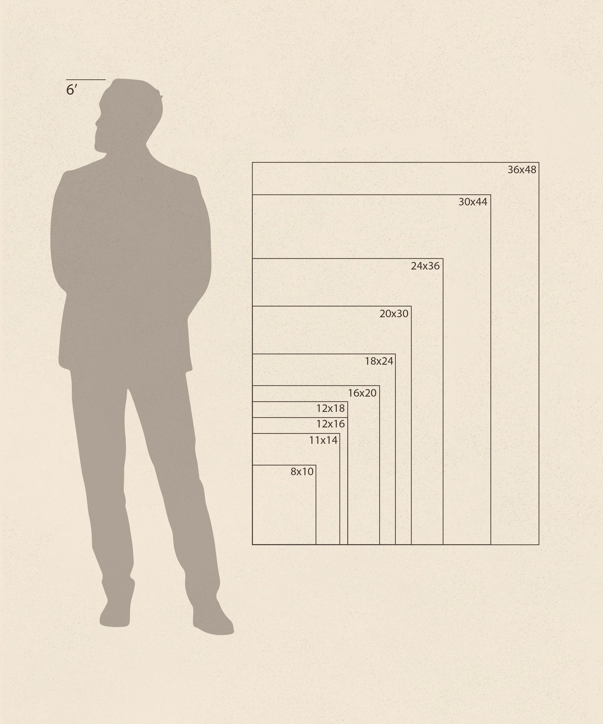 *Our largest size, 36x48, only has a 2" white mat which makes its final frame size 40x52.