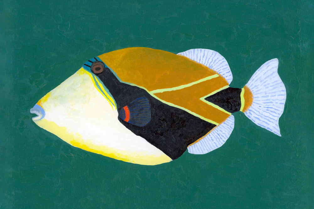 This triggerfish, also known in Hawaii as humu humu, is one of six amazing pieces in Hannah Ervick’s Tropical Fish Collection. Inspired by the vibrant reefs of Hawaii near her parents’ home, Hannah brings each marine species to life with masterful acrylic strokes and eye-popping color. Hang it solo for a standout statement, or group the whole school together for a dazzling gallery wall full of coastal charm and personality.
