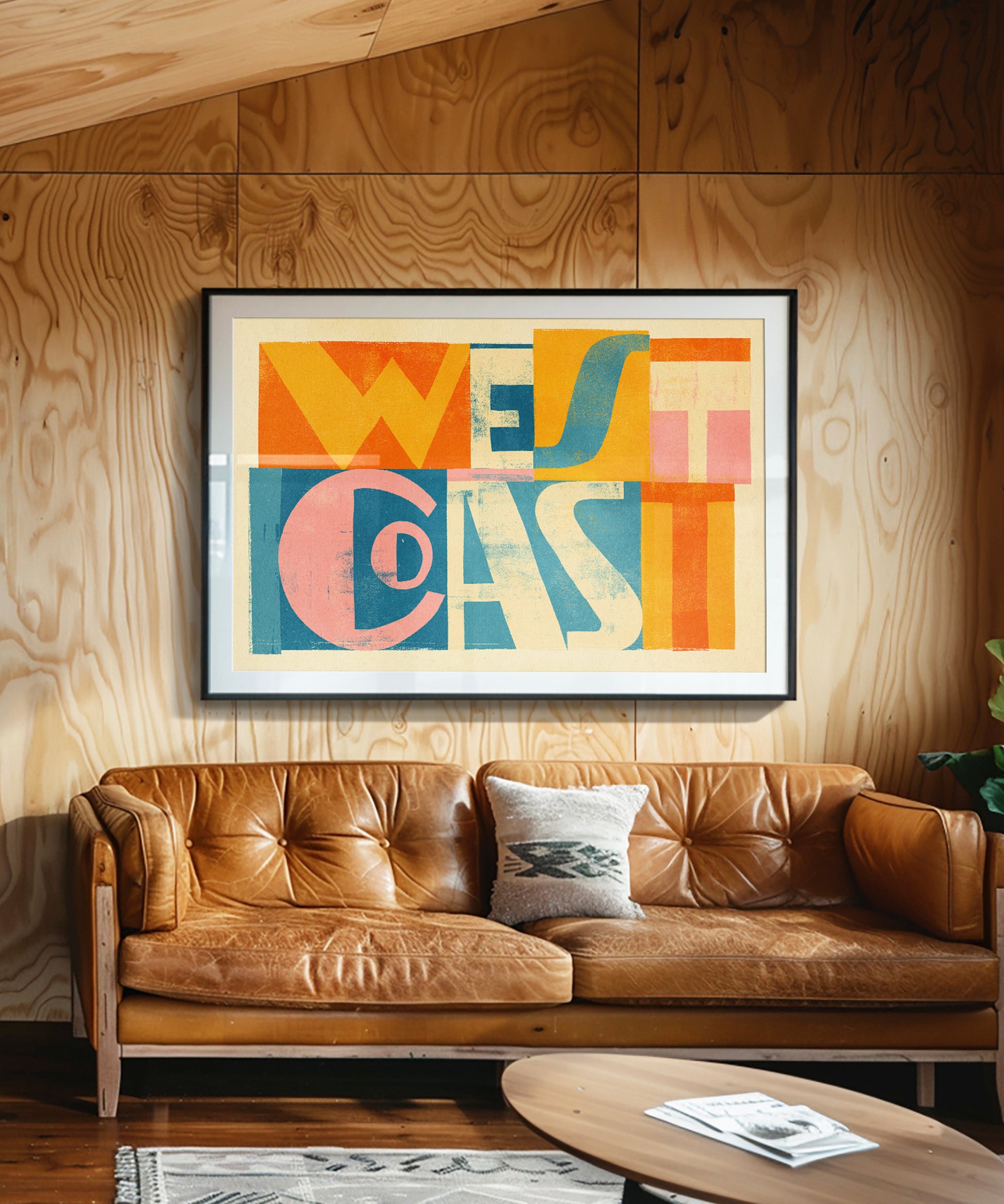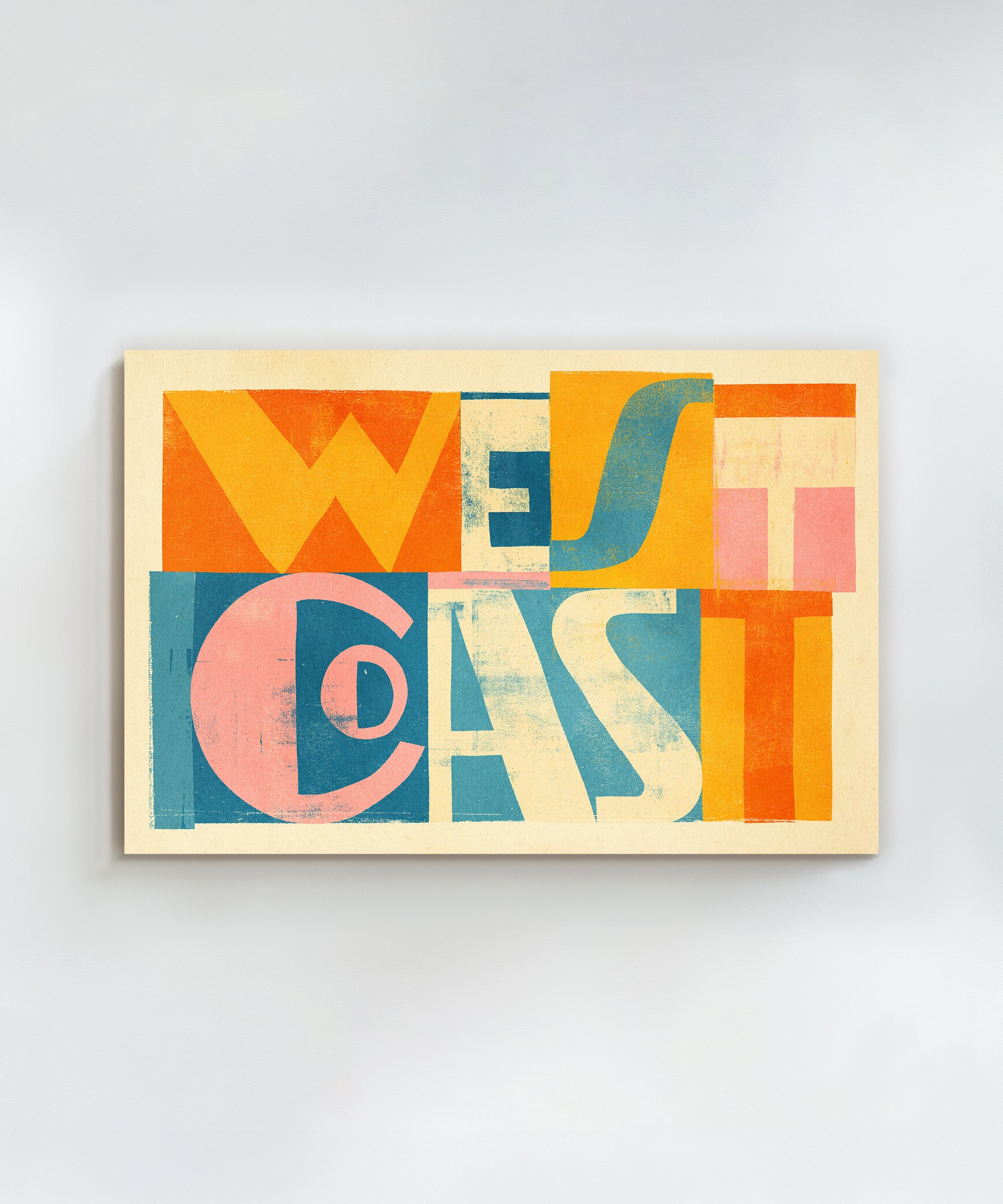 This one's for the West Coasters! This custom typography piece will bring a fun yet modern splash of color to any wall. It fits a wide variety of homes, from the laid back surf shack to the modern California retreat. Represent your coast whether you're still living there, or you just want to show off where you're from!